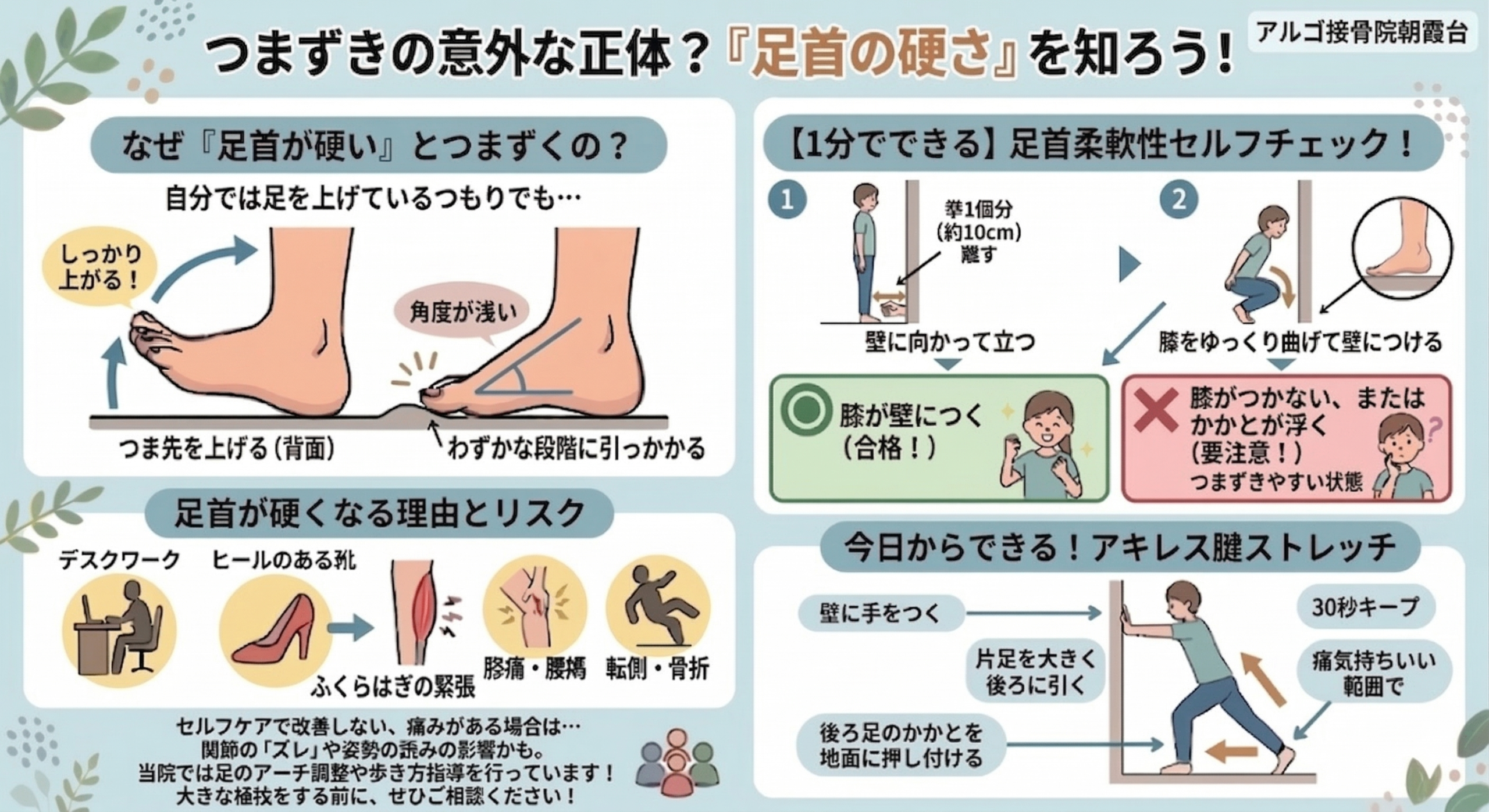 「最近よくつまずく…」は筋力低下?実は「足首の柔軟性」が原因かも! | 朝霞台駅から徒歩で2分・北朝霞駅から徒歩で3分 アルゴ接骨院朝霞台