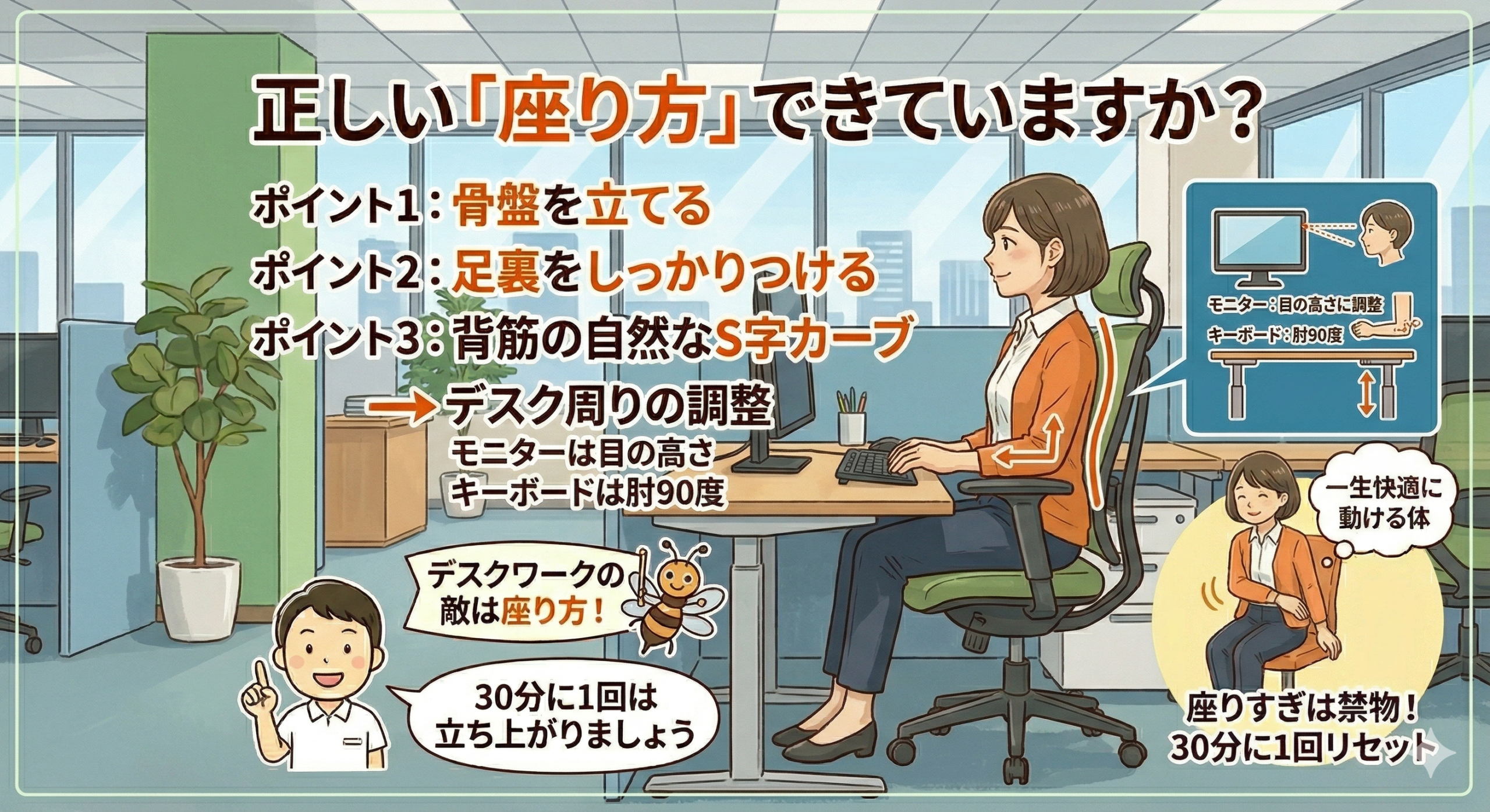 「気がついたら、体がガチガチになっている」「腰が痛くて集中できない」というお悩み、実は非常に多いんです。